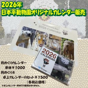 「月めくりカレンダー&A6版卓上カレンダーセット」の販売は日本平動物園内ショップ「動物たちの森1」のみとなります。